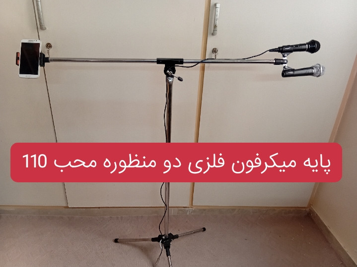 این پایه میکرفون تمام فلز است و تاشو میباشد و دو منظوره میباشد و هم قابلیت نصب گیره میکرفون دارد و نگهدارنده موبایل دارد