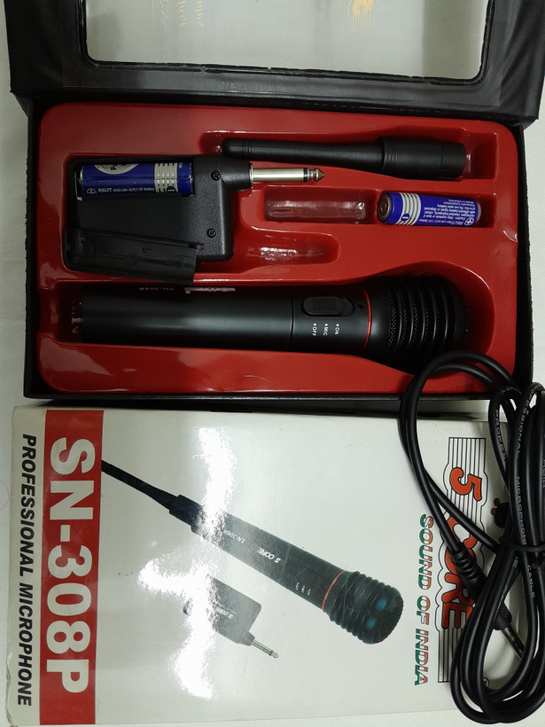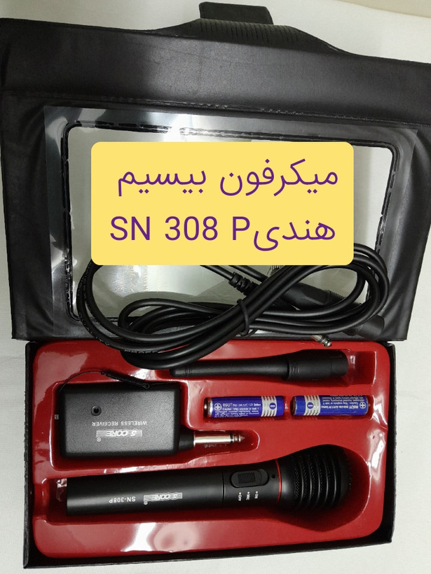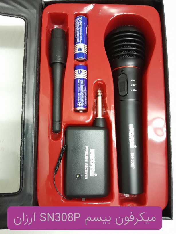 میکرفون بیسیم و با سیم 5core با کپسول شفاف مدل SN-308 P دارای یک گیرنده میباشد که با باطری قلمی روشن میشود و داخل میکرفون هم یک باطری قلمی میخورد و یک آنتن پلاستیکی دارد که به انتهای میکرفون نصب میشود و برای فضای اتاق و سالن و حسینیه کوچک پاسخگو میباشد جنس بدنه پلاستیک فشرده میباشد و رنگ میکرفون مشکی موجود است